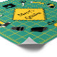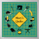 Here’s my special design for fellow quilters with my favourite tools and supplies for quilting, patchwork, needlework and embroidery: sewing needles, spools of thread, pin cushion with stick pins, bobbins, thimble, tape measure, scissors, bolt of cloth, rotary cutter, sewing machine and label on a green and gold self healing cutting mat. A thoughtful gift for yourself or that special creative person in your life.
