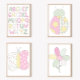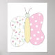 A combination of soft, quilt inspired designs, and a butterfly creates this cute, bedroom wall decor art print. The background is white, while the butterfly consists of white with light shades of green, yellow, and pink. This art print features a signature by me, the artist.