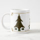 This elegant design features a quilted Christmas tree with jewel-toned ornaments adorning it and presents underneath, all surrounded by a delicate gold filigree border with jewels at the corners. This mug is available in jumbo, espresso, and bone china sizes and styles.