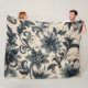 Quilted Cream and Navy Blue Floral Design Fleece Blanket