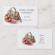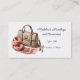 Picture a modern, chic business card tailored for various handbag, purse, or accessory businesses. Envision a store display shelf carrying a line of quilted fashion handbags, this one is a taupe satchel style bag featuring a coral pink scarf and a soft lipstick accent. This card can be personalised with all your business details. Additional customisation on the back of the card.