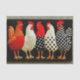 A cheerful and textured farmyard inspired design featuring five colorful hens and roosters standing side by side against a black quilted background. Each bird has its own unique plumage pattern giving the image a delightful mix of contrast and personality. The raised, stitched like texture and bright red combs add a tactile, handmade charm that feels both folksy and modern farmhouse. This playful image brings warmth and whimsy to any craft project, perfect for those who love rustic décor with a stylish twist. Artwork similar to a textile applique or fabric relief illustration with a folk art finish……COLOR COMBINATIONS: Black, white, red, orange, ivory, yellow, gray…..PERFECT FOR: Farmhouse themed decoupage, kitchen décor crafts, upcycled furniture projects, rustic mixed media art, country style gift wrapping.......…... 🖤 NOTE 1. This design is available in two options: Left and Right. You can find them in the Collection shown below. If they don’t appear there, try searching for their unique identifiers: EN2L for the Left design and EN2R for the Right version….🖤 NOTE 2. The 18 lb tissue is a great choice if you like a little extra strength—it's easier to handle, resists tearing and allows for gentle repositioning. It’s also more opaque, making it perfect for darker surfaces. The 10 lb tissue is wonderfully lightweight and flexible giving you that smooth, blended finish. It’s ideal for layering on furniture or smaller projects so treat it gently and it will reward you with stunning results!.….🖤 NOTE 3. All items with this particular design share my unique identifying “Letter/s Number/s” label in the title for easy searching. …..🖤