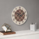 Linda Baysinger Peck’s repeating quilted star design, in green, burgundy and tan, with burgundy numbers.