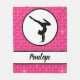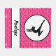 This design is vibrant in color, personalized with the name of your child, features a female silhouette doing a handstand pose that is popular in gymnastics, dance, cheer and even yoga. The background pattern has the look of a puffy quilt with rhinestones all over.