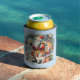 Quilted Patchwork Santa with Christmas Stars Can Cooler