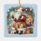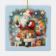 Quilted Patchwork Santa with Christmas Stars Ceramic Ornament