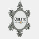 Quilter text with a decorative line sporting a needle and thread is a unique design for birthdays and holidays.
