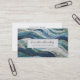 Vibrant blue quilt pattern business card for a quilter and patch worker. Script name and quilted fabric effect background.