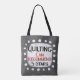 A funny typographic design that says "Quilting: Can Recommend, 5 Stars". It's black and red text on a white rectangle with funky, playful white dots surrounding it, all on a grey background.
