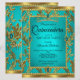 Quinceanera 15th Birthday Teal Blue Tiara Gold Invitation
