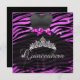 Quinceanera 15th Tiara Hot Pink Black Zebra Dress Invitation