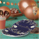 Quinceanera and Tiara Botanical in Blue and Gold Paper Plate