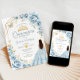 Quinceanera Baby Blue Dress Floral Gold Invitation