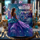 Quinceanera Birthday Party purple teal blue silver Dress Tiara. Magical fairytale Quinceanera 15th Birthday princess diamond Tiara. Princess Birthday Party. Sparkle Glitter Tiara. Party Princess Party for a girl. Fabulous product for teen Girls. Invitation Formal. Customise to change or add details. Customise with your own details. All Designs are Copyrighted! Content and Designs © 2000-2025 Zizzago™ ® © (Trademark) and all their licensors. Zizzago created this design PLEASE NOTE all flat images! They Do NOT have real Glitter, Diamonds Jewels or real Bows!! Some help from AI.