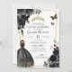 Quinceañera Black Floral Butterfly, Girl in Dress Invitation