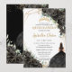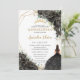 Quinceañera Black Floral Roses Dress Gold Crown Invitation