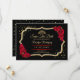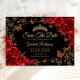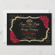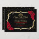 Black red and gold Quinceanera celebration Save The Date card. Features, script font, red roses, tiara and confetti. Perfect for an elegant princess style glam celebration. Personalize with your own details. Printed Zazzle cards or instant download digital printable template.