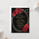 Quinceanera Black Red Roses Flowers Gold Butterfly Invitation