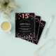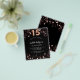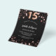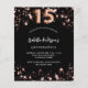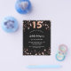 A classic black background, decorated with rose gold stars. Personalise and add a name and party details. Number 15 is written with a balloon style script.