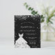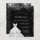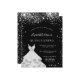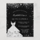 A modern, stylish and glamourous invitation for a Quinceañera, 15th birthday party. A chic black background with faux silver glitter dust and a dress. The name is written with a modern hand lettered style script. Personalise and add your party details.