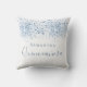 Quinceanera blue glitter drops monogram white cushion