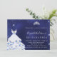 A modern, stylish and glamourous invitation for a Quinceañera, 15th birthday party. A midnight blue background with faux glitter dust, a tiara and a dress. The blue colour is uneven. The name is written with a modern hand lettered style script. Personalise and add your party details.