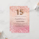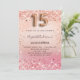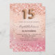 A modern, stylish and glamourous invitation for a girl's Quinceañera, 15th birthday party. A rose gold and blush pink gradient background, confetti. The name is written with a modern dark rose gold coloured hand lettered style script. Personalise and add your party details. Number 15 is written with a balloon style font, script.