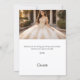 A modern and elegant Quinceañera thank you card. A white background, decorated with a large ivory colored bow with pearls. On the front the text: Thank You, name, and a date.
