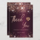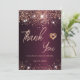 Quinceanera burgundy rose gold thank you card