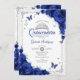 Quinceanera Elegant Chic Royal Blue Roses Silver Invitation