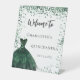 Quinceanera emerald green dress confetti welcome pedestal sign