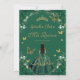 Quinceañera Emerald Green Floral Black Hair Gold Invitation