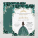 Quinceañera Emerald Green Floral Tiara Princess Invitation