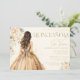 Embrace the allure of luxury with our Golden Quinceañera Birthday Party Invitation! This exquisite design showcases a radiant brunette adorned in a glamourous golden gown, exuding elegance amidst a backdrop of delicate cream and white flowers. Each detail captures the essence of a young woman stepping into her own, marking a momentous transition into adulthood. With its opulent charm and captivating imagery, this invitation promises to set the stage for a celebration as enchanting as it is unforgettable. Invite your loved ones to join in the joy and create cherished memories amidst a backdrop of beauty and sophistication.