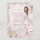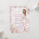 A glamourous invitation for a glamourous girl's Quinceañera celebration. Featuring gorgeous florals and a beautiful girl with long brown hair.