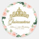 Quinceanera God Tiara Blush Pink Floral Classic Round Sticker