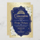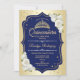 Features script font, white roses, tiara and confetti. Classy navy blue design with faux glitter gold. Perfect for an elegant glam celebration.