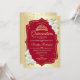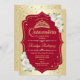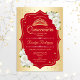 Features script font, white roses, tiara and confetti. Classy red design with faux glitter gold. Perfect for an elegant glam celebration.