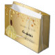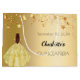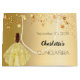 A faux gold looking background decorated with stars and a girl wearing a tiara and a golden coloured dress. Personalise and add name, date.