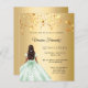 Quinceanera green gold dress stars invitation