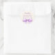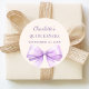 A soft ivory background color. Decorated with a large lavender colored bow. Personalize and add the name and date.