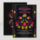 Quinceanera Mexican Party Flowers Black Birthday Invitation