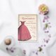 This quinceañera celebration/party invitation features a beautiful red handpainted dress on a retro grey background with a golden foil frame.