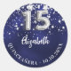 A sticker for a Quinceañera, 15th birthday party. A navy blue background colour with faux silver stars. The blue colour is uneven. Add your name, text.