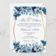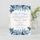 Navy Blue Floral Quinceanera Invitation Butterflies, Invitation for 15-Year-Old Marine Blue