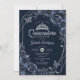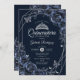 Navy blue and silver Quinceanera celebration invitation. Features, script font, glitter silver butterflies, watercolor roses and tiara. Perfect for an elegant princess style glam celebration. Personalize with your own details. Printed Zazzle invitations or instant download digital printable template.