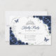 Navy silver and white floral Quinceanera RSVP reply card. Features, script font, silver butterflies, watercolor roses and tiara. Perfect for an elegant princess style glam celebration. Personalize with your own details.