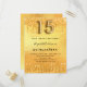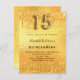 A modern, stylish and glamourous invitation for a Quinceañera, 15th birthday party. A faux gold looking background with drips, paint dripping look. The name is written with a modern hand lettered style script. Personalise and add your party details. Number 15 is written with a balloon style font, script.