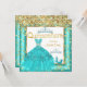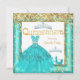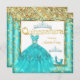 Quinceañera Party Teal Dress High Heels Gold Invitation