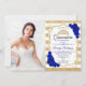 Quinceanera Party With Photo - Gold Royal Blue Invitation